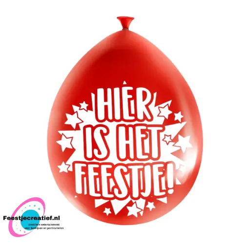 Latex ballonnen “Hier is het feestje!”, 30cm – 8 stuks