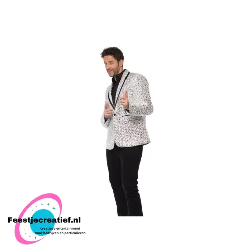 Val op in stijl met dit opvallende zilveren colbert voor heren in maat xL. Ideaal voor themafeesten, gala’s, optredens, carnaval of een party waar je outfit nét even extra mag shinen.
