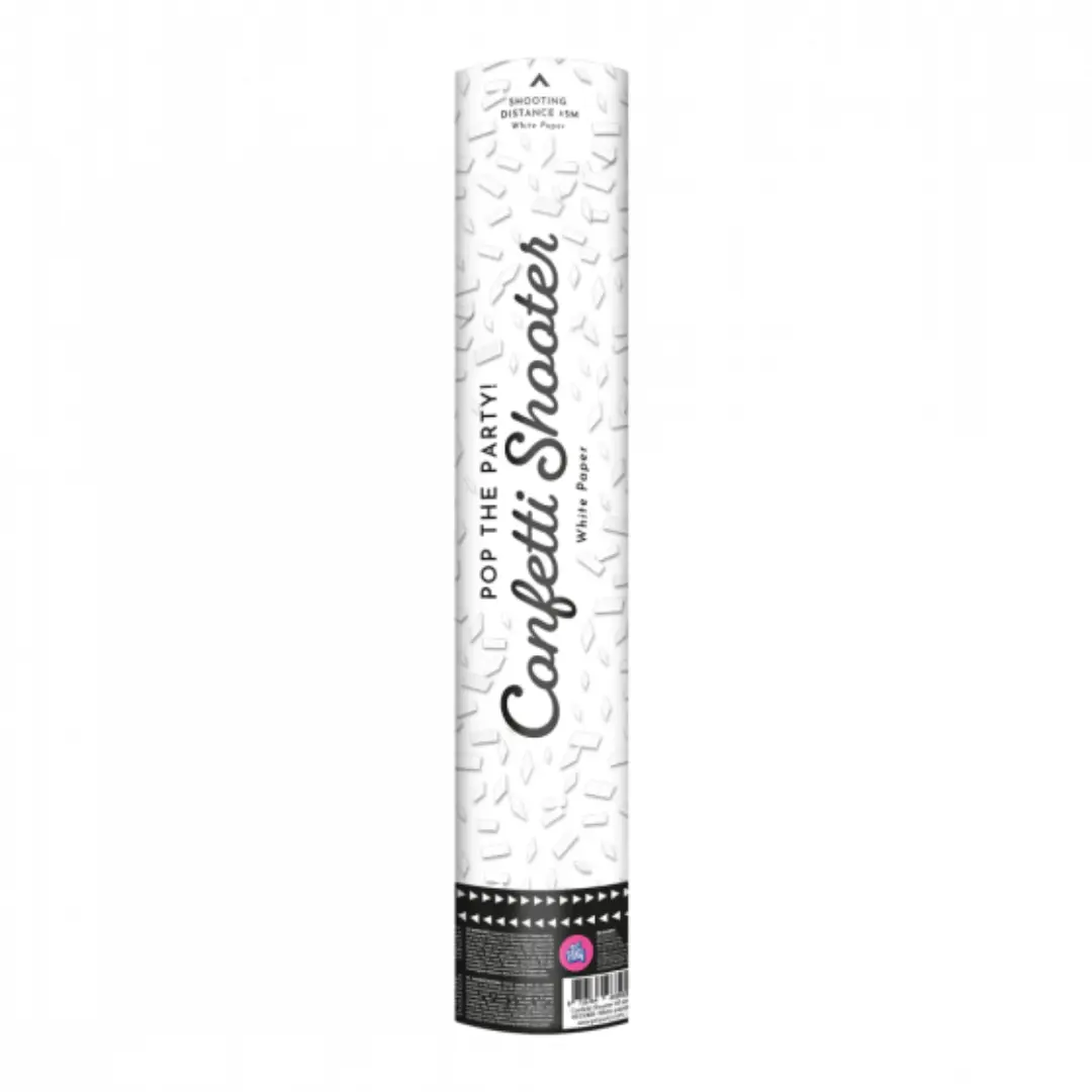 Grote party popper met roze snippers voor de geboorte van een meisje. De shooter heeft een lengte van 20cm en zit vol met blauwe papieren snippers. Gebruik deze op een geboorte feestje, babyshower of gender reveal party. Let wel op: op de popper staat de kleur van inhoud. Wil je dat dit een verrassing blijft voor de gebruiker, moet je dit nog afdekken.
