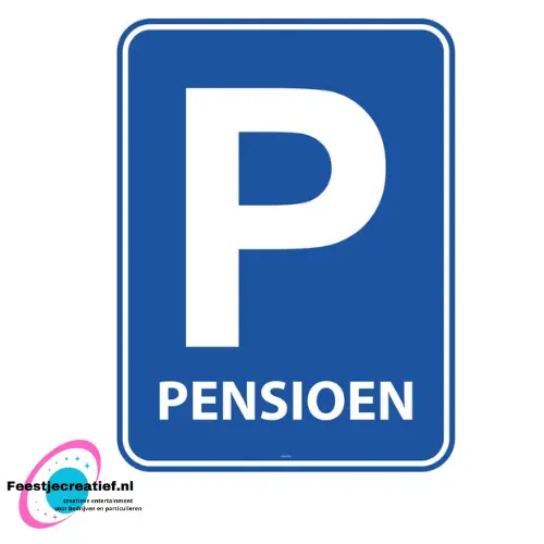 Deurbord/verkeersbord P “Pensioen”. Afmetingen: ca. 47 x 33 centimeter.