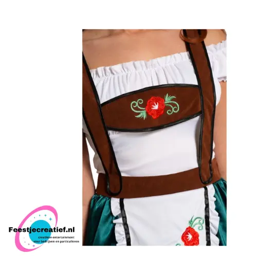 Dirndl Fay is een speelse en stijlvolle groene dirndl, perfect voor Oktoberfest, bierfeesten en themafeesten. De jurk heeft een vrouwelijke pasvorm en klassieke details voor een echte Beierse uitstraling.