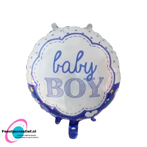 Folieballon voor het vieren van de geboorte van een jongen met als tekst "Baby boy". De folieballon is 40 centimeter hoog.