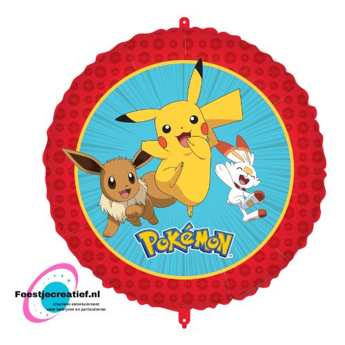 Ronde folieballon met kleurrijke Pokémon-opdruk, ideaal als eyecatcher voor een Pokémon-feestje.