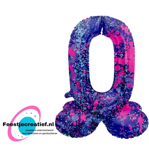 Folieballon Cijfer -0- Paint Splash- Staand – 41 cm