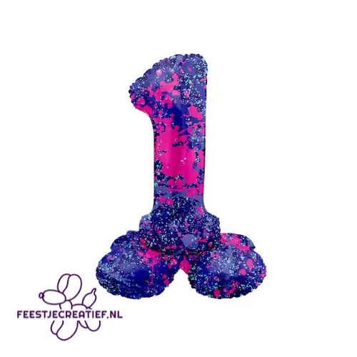 Folieballon Cijfer – 1 – Paint Splash- Staand- 72 cm