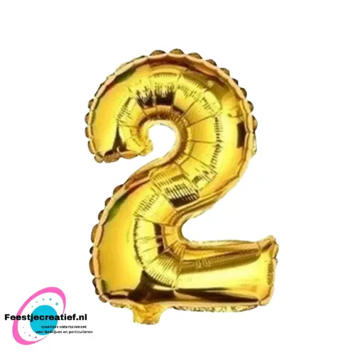 Gouden folieballon van maar liefst 40 cm hoog (16 inch); een blikvanger van formaat. De folieballon is in de vorm van een 2.