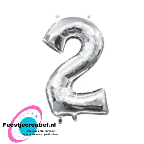 Folieballon cijfer ‘2’ zilver 40cm