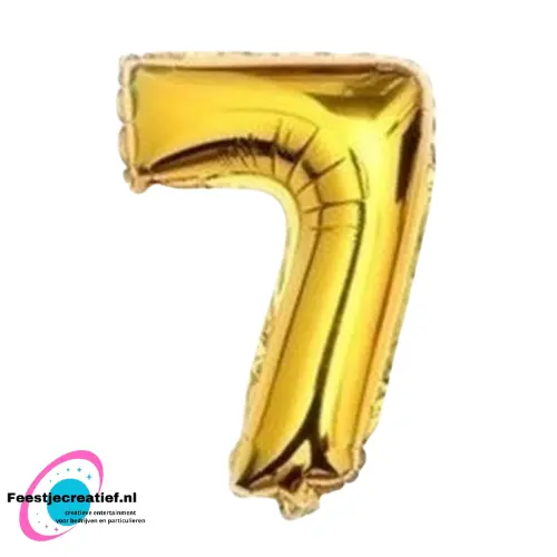 Gouden folieballon van maar liefst 40 cm hoog (16 inch); een blikvanger van formaat. De folieballon is in de vorm van een 7. Kan enkel met lucht gevuld worden.