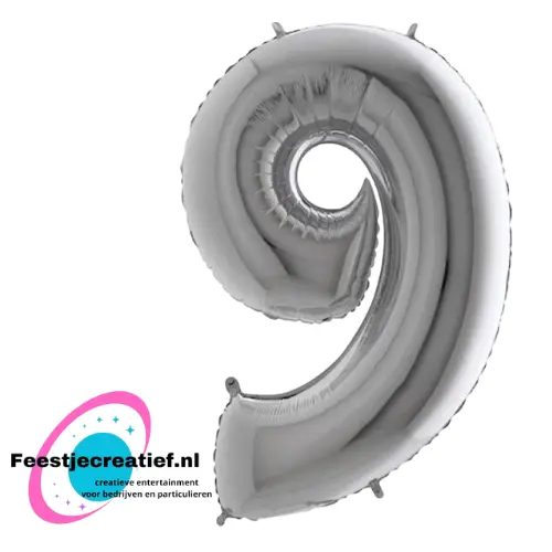 Folieballon Cijfer – 9 – zilver- 66 cm