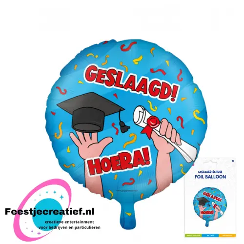 Deze party folie ballonnen Geslaagd (cartoon) zijn een leuke toevoeging voor als er iemand geslaagd is en door de gebruikte kleuren valt deze folie ballon extra op. De folie ballon kan worden gevuld met helium of met lucht, hiervoor wordt standaard een rietje meegeleverd. De ballonnen hebben een diameter van ongeveer 45 centimeter, worden plat geleverd