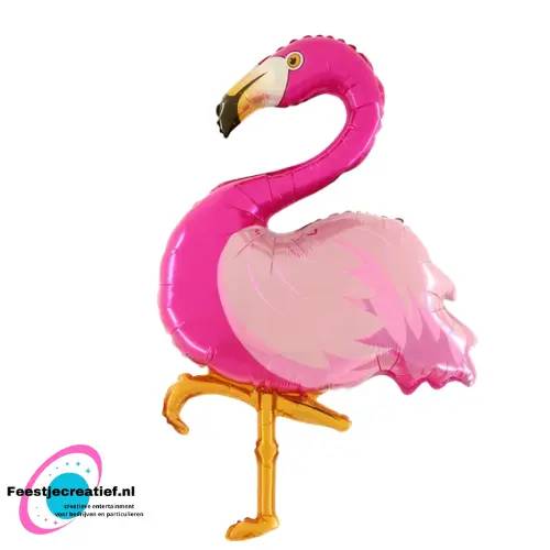 XL folieballon in de vorm van een roze flamingo.