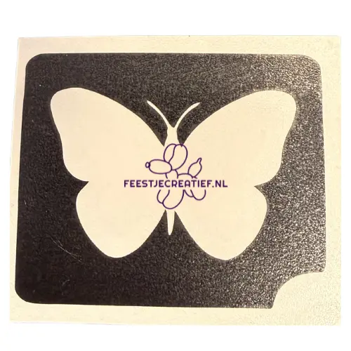 Glittertattoo sjabloon van een vlinder. Afmetingen: ca. 5×6 centimeter.