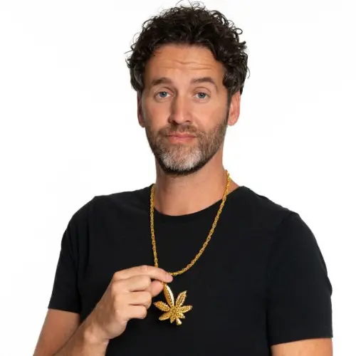 Val op met deze speelse Gouden Wiet Ketting – hét accessoire voor een relaxed, festival- of stoner-thema. De goudkleurige hanger in de vorm van een wietblad geeft je outfit direct een ondeugende, edgy twist. Perfect voor carnaval, themafeesten, festivals of foute party’s.