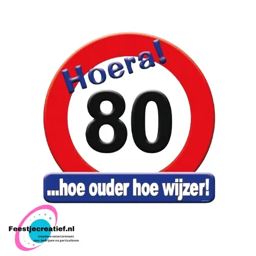 Deurbord/verkeersbord “Hoera! 80 …hoe ouder hoe wijzer!”