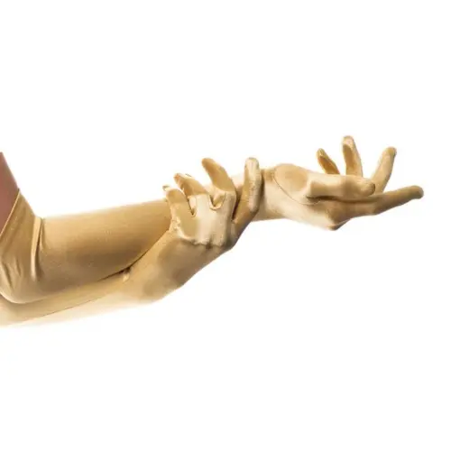 Voeg een vleugje glamour toe aan je outfit met deze lange gouden nylon handschoenen van ca. 40 cm. Perfect voor gala’s, chique feestjes, 20’s/Great Gatsby themafeesten, toneel, carnaval of fotoshoots.