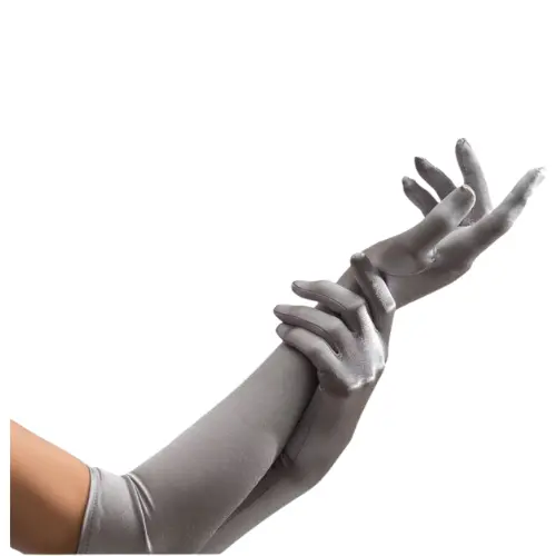 Maak je outfit extra glam met deze lange zilveren nylon handschoenen van ca. 40 cm. Perfect voor gala’s, chique feestjes, 20’s/Great Gatsby themafeesten, toneel, carnaval of fotoshoots.