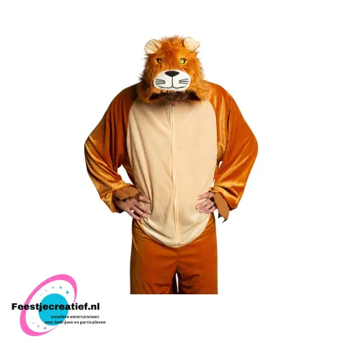 De onesie heeft een capuchon met leeuwengezicht en manen en een comfortabele, ruime pasvorm zodat je lekker vrij kunt bewegen.