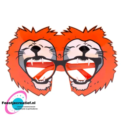 Echte oranje zonnebril met om de rand twee brullende leeuwen.