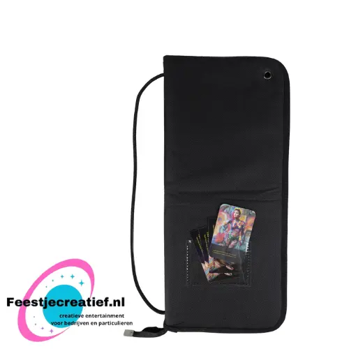 Voorzien van ventilatie gaatjes zodat het vocht altijd uit het etui kan verdampen. Voorop zit een venstertje waarin enkele visite kaartjes bewaard kunnen worden.