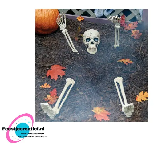 Voeg een griezelige flair toe aan je Halloween-decoraties met het 5-delige skeletpakket van feestjecreatief. Deze set bevat vijf aparte skeletonderdelen die samen een angstaanjagende en complete skeletfiguur vormen. Perfect voor het versieren van je huis, tuin of spookhuis, en ideaal voor Halloween-feestjes en andere griezelige gelegenheden. Het gedetailleerde ontwerp zorgt voor een indrukwekkende en sinistere uitstraling die gegarandeerd de aandacht trekt. Bestel nu het 5-delige skelet bij ons en transformeer je Halloween-omgeving in een huiveringwekkende scene!