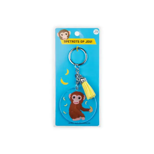 Deze ondeugende aap sleutelhanger zorgt voor een vrolijke noot aan je sleutelbos, tas of rugzak! De acryl sleutelhanger met speels kwastje geeft je spullen een grappige en unieke uitstraling. Leuk voor kinderen én volwassenen, als cadeautje, traktatie of gewoon voor jezelf.