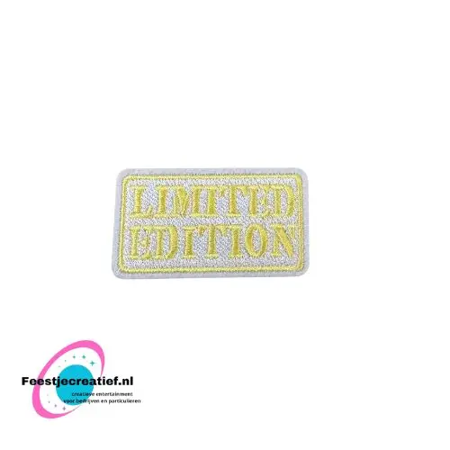 Strijkembleem/applicatie, ‘limited edition” wit/geel