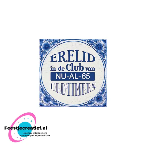 Een mijlpaal verdient een glimlach. Dit Delfts blauwe tegeltje met de tekst “Nu al 65” is het perfecte cadeau voor een 65e verjaardag of pensionering. Klassiek van uitstraling, maar met een knipoog naar de leeftijd.