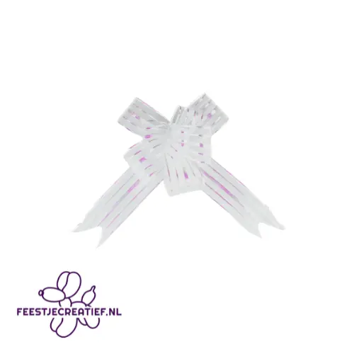 Treklint van witte tule om cadeaus mee in te pakken of om als versiering te gebruiken. De witte tule is zeer geschikt voor bruiloft- en huwelijksfeesten. Dit lint komt in 5 rollen van elk 80 centimeter.