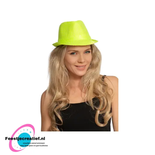 Maak een knallende indruk met dit trilby hoedje in neon geel. De felle kleur zorgt voor een echte eyecatcher en is perfect voor neonparty’s, festivals, carnaval, themafeesten of foute party’s. Leuk voor zowel dames als heren en ideaal om elke party-outfit net dat beetje extra te geven.