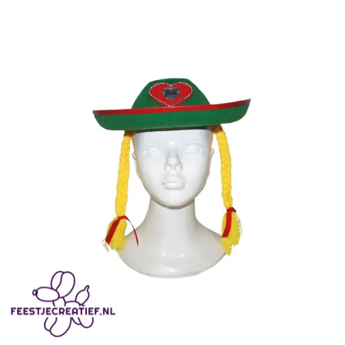 Dit Oktoberfest hoedje is inclusief de twee vrolijke vlechten aan de zijkanten. 100% polyester.