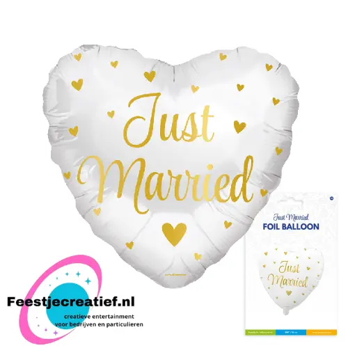 Deze party folieballon Just married is een leuke toevoeging voor als er iemand gaat trouwen! Door de gebruikte kleuren valt deze folieballon extra op. De folieballon kan worden gevuld met helium of met lucht, hiervoor wordt standaard een rietje meegeleverd. De ballon heeft een diameter van ongeveer 45 centimeter, worden plat geleverd.