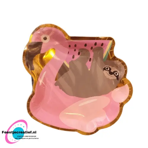 Wegwerpbordjes flamingo/luiaard – 6 stuks